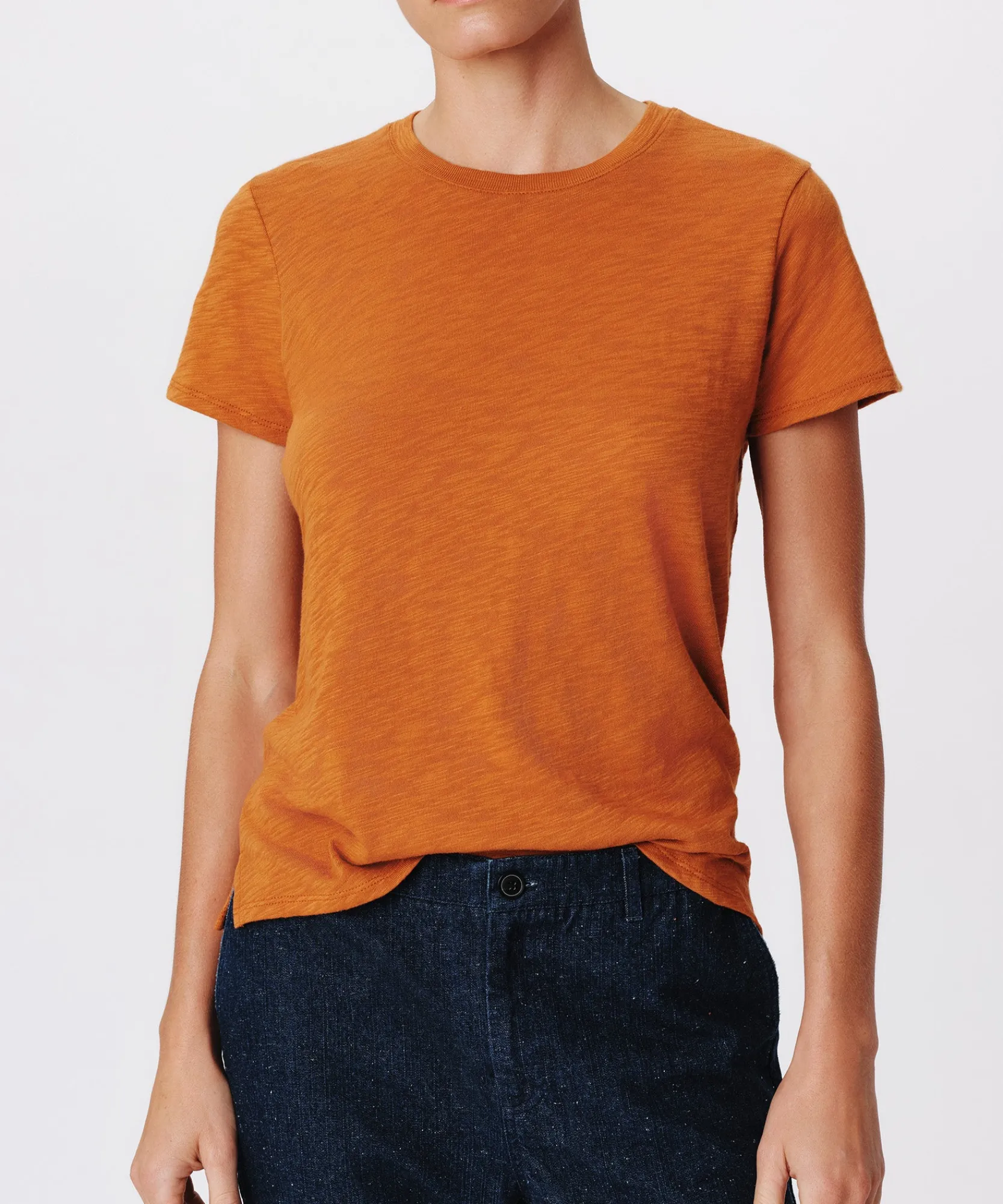The Slub Jersey Schoolboy Crew Neck Tee gets its texture from the uneven yarns of our unique Peruvian Cotton. It features a relaxed crew neck silhouette and just the right amount of sheer. The loose weave of this heavier Cotton meets the slightly shrunken straight cuts of the Schoolboy silhouette.