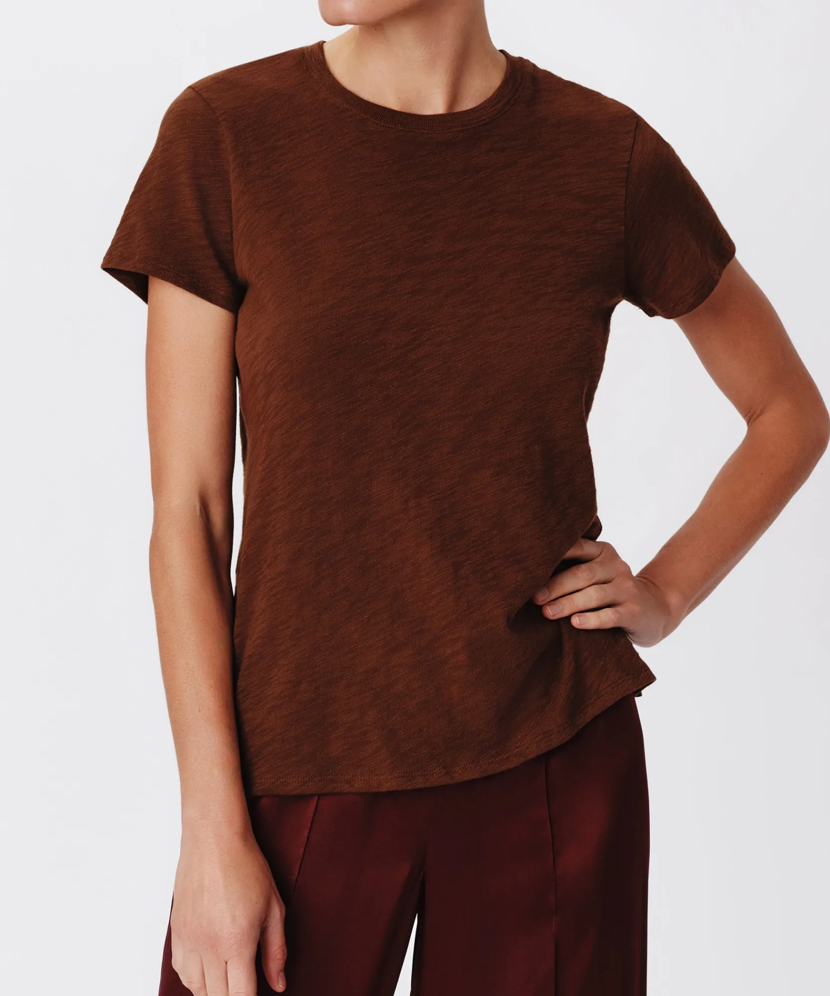 The Slub Jersey Schoolboy Crew Neck Tee gets its texture from the uneven yarns of our unique Peruvian Cotton. It features a relaxed crew neck silhouette and just the right amount of sheer. The loose weave of this heavier Cotton meets the slightly shrunken straight cuts of the Schoolboy silhouette.