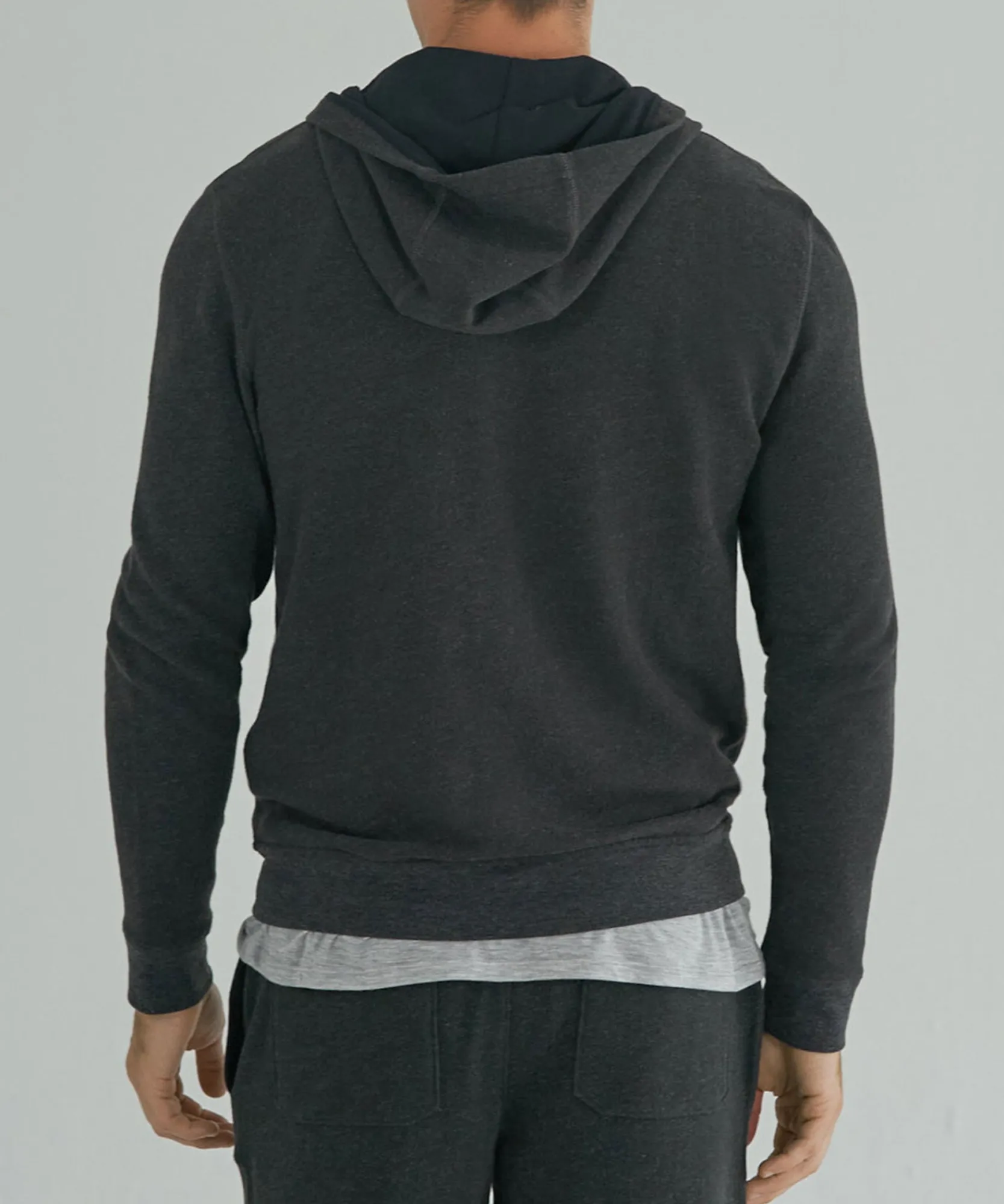 The French Terry Zip Hoodie is substantial yet seasonless. Its medium weight construction and sleek elastic ribbing at the cuffs and waistband offer an updated take on the classic sweatshirt. Every detail of this piece–from the jersey-lined hood to the size of the pockets–is thoughtfully executed. It features a zip closure at the front.