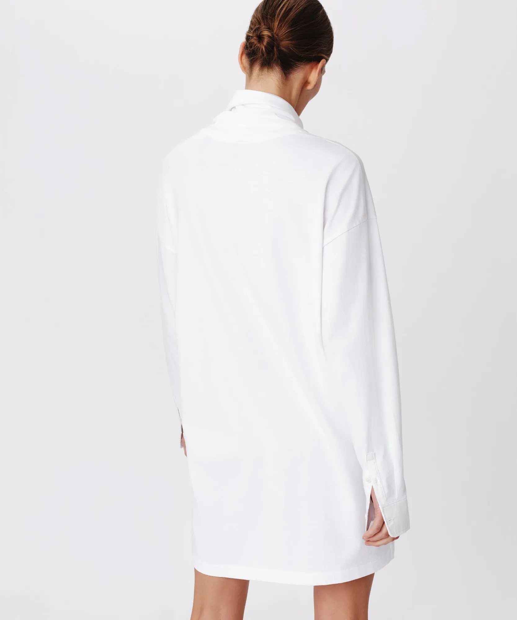 The Heavyweight Jersey Mixed Media Turtleneck Dress is an ultra soft style with a relaxed fit. It features a smooth cotton body with soft contrast texture on the collar and sleeves. Finished with adjustable cuffs for a versatile look.