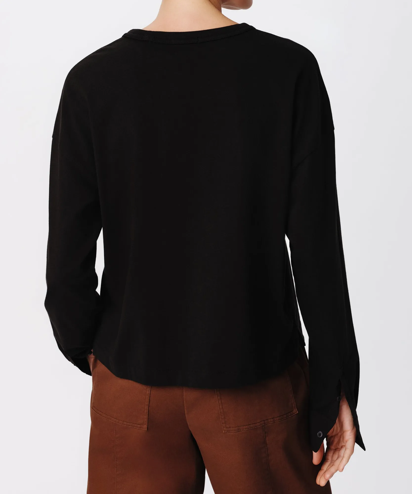 The Heavyweight Jersey Mixed Media Top is an ultra soft style with a relaxed fit. It features a smooth cotton body with contrast ribbing on the neckband and sleeves. Finished with buttoned cuffs for a versatile look.