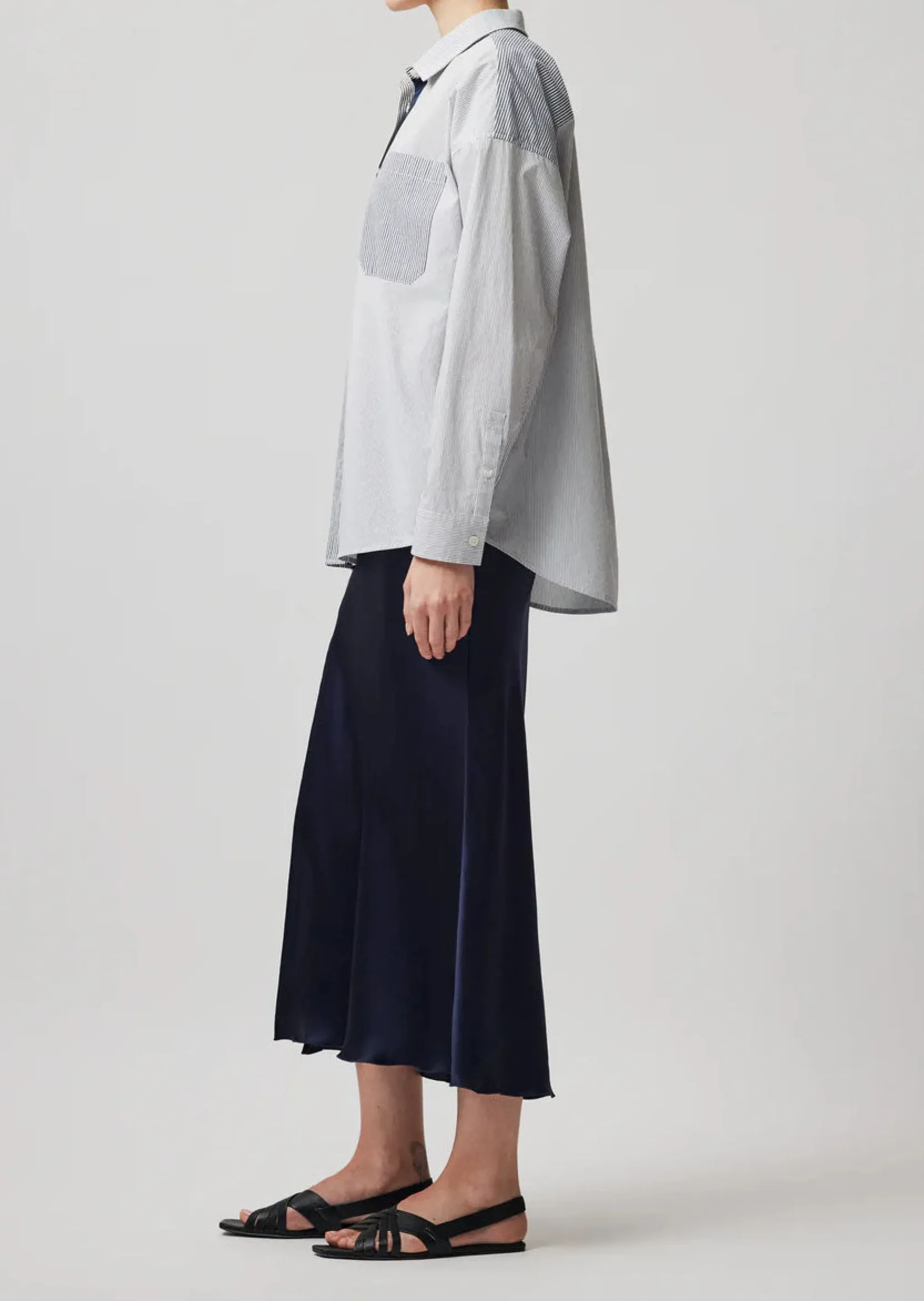 Mixed Stripe Shirting Boyfriend Shirt -|ATM Anthony Thomas Melillo Clearance