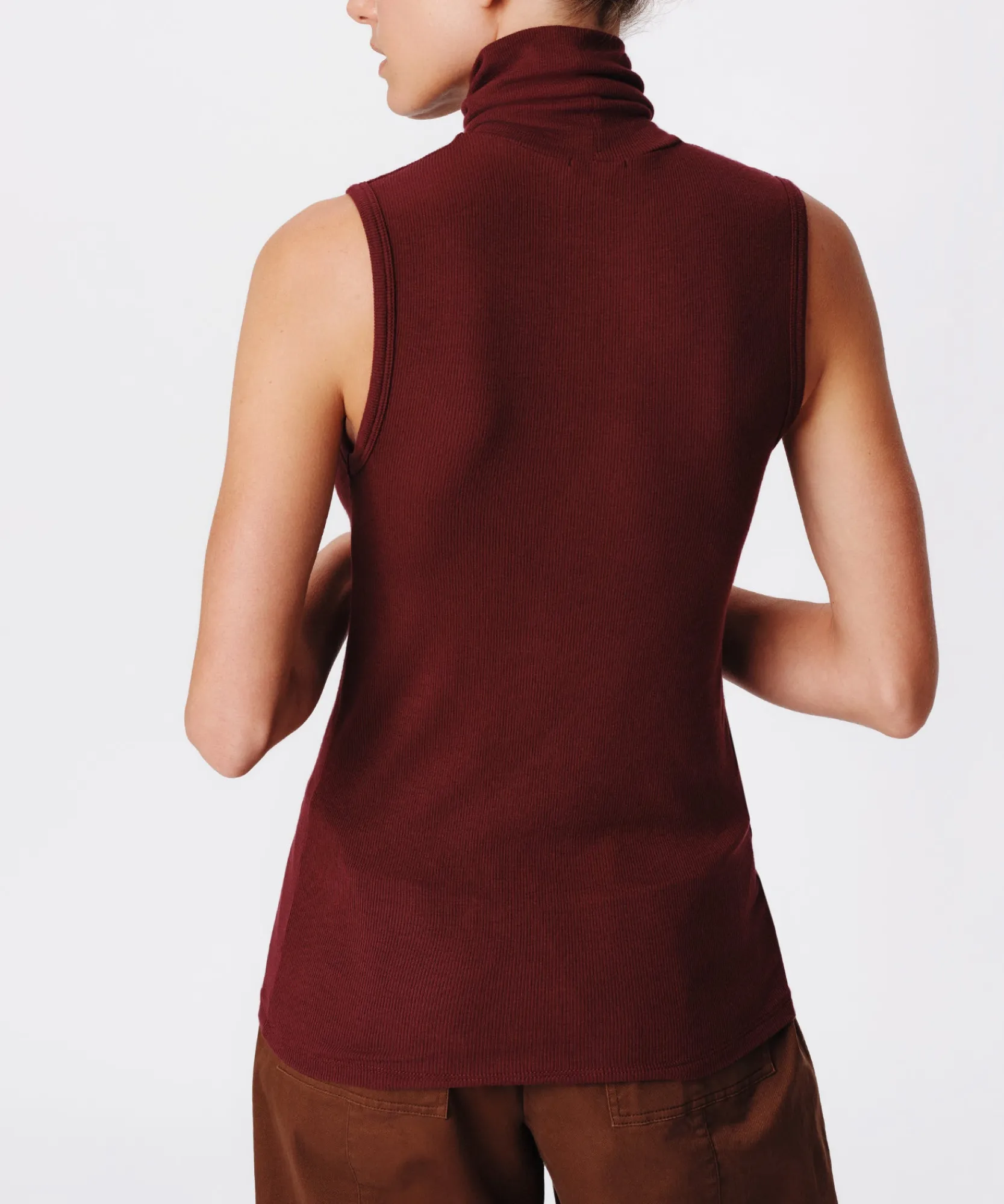 The Modal Rib Sleeveless Turtleneck is the perfect single layer base. It features a featherweight construction, with a meticulously measured fit. Crafted from Micro-Modal yarn, made in Peru on a machine used only by ATM for an inimitably soft feel. It is the ultimate everyday basic that molds to the body like a second skin.