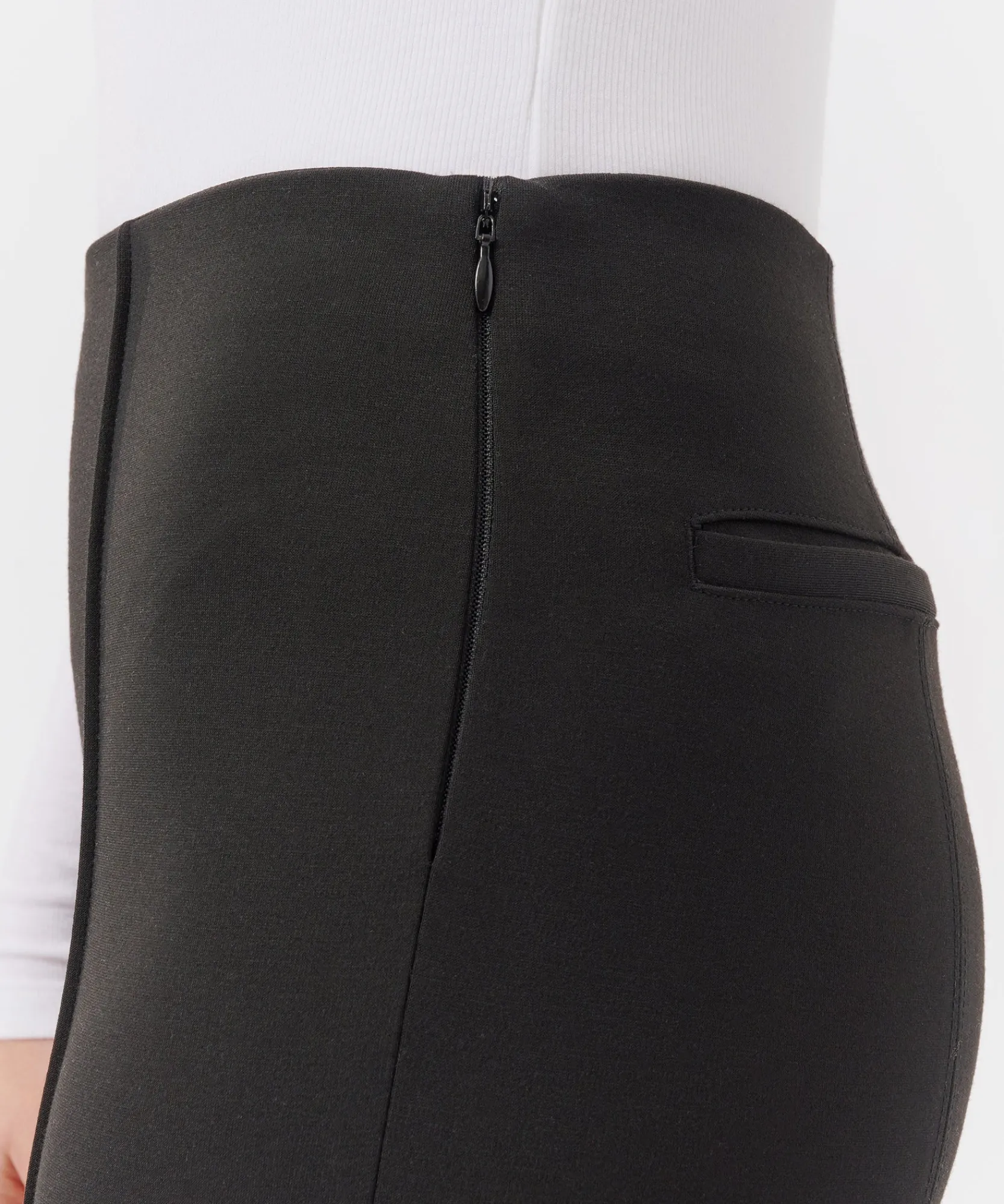 The Ponte Kick Flare Pant is the perfect pant. The dense ponte knit is known for its formidable structure and resilience.Its crease-resistant quality makes these pants the perfect travel companions. The mid-rise, flared silhouette features a flat front with concealed side zip closure and an elegant seam detail.