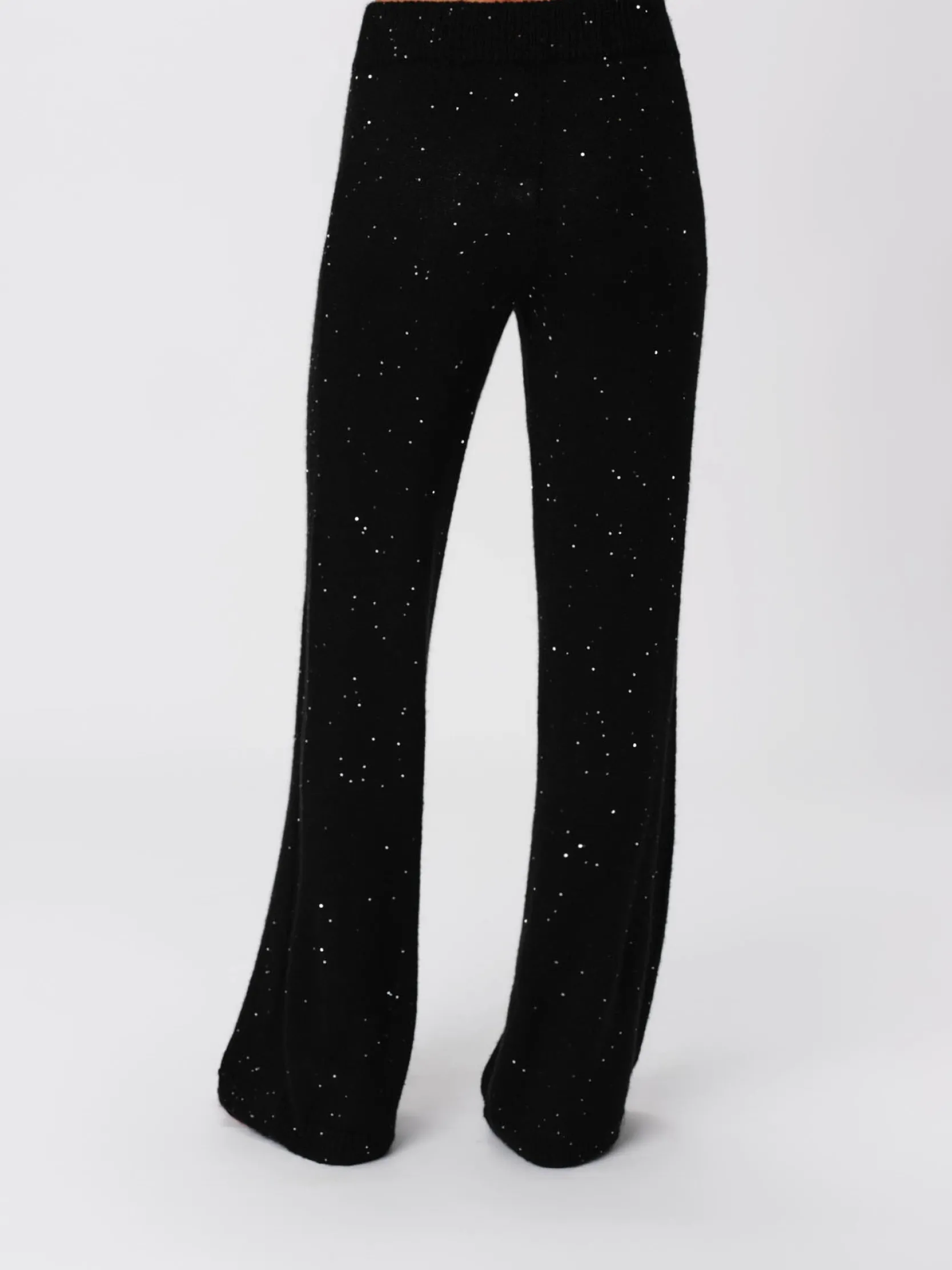 The Sequin Wool Blend Wide Leg Pant is an ultra relaxed pull on style with an encased elastic waistband. They feature wool and mesh blended stitching with sequins. Part of set with matching top.