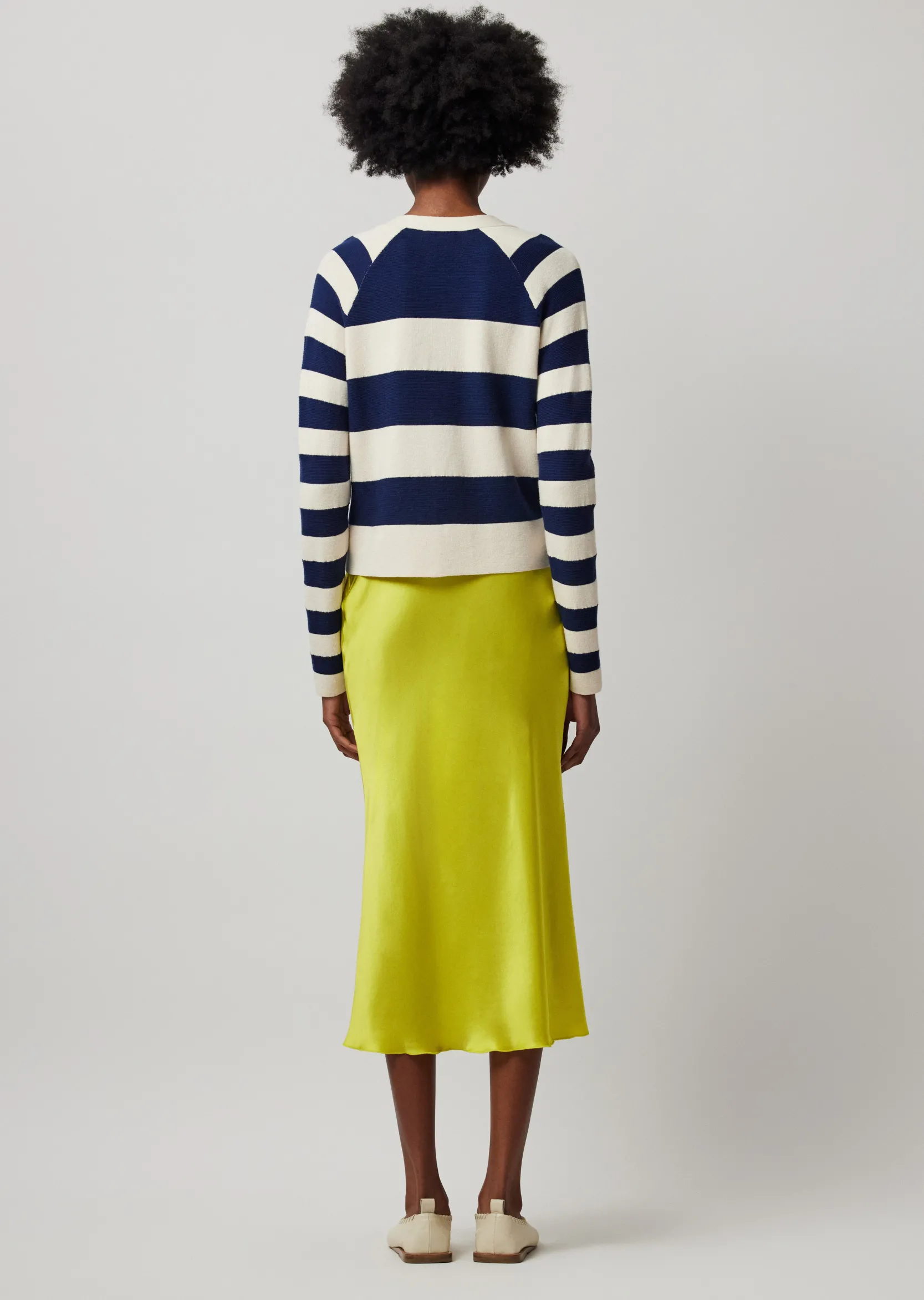 The Silk Charmeuse Slit Detail Midi Skirt combines a fluid silhouette with an ultra soft featherweight fabric. It features a bias cut and side slit.