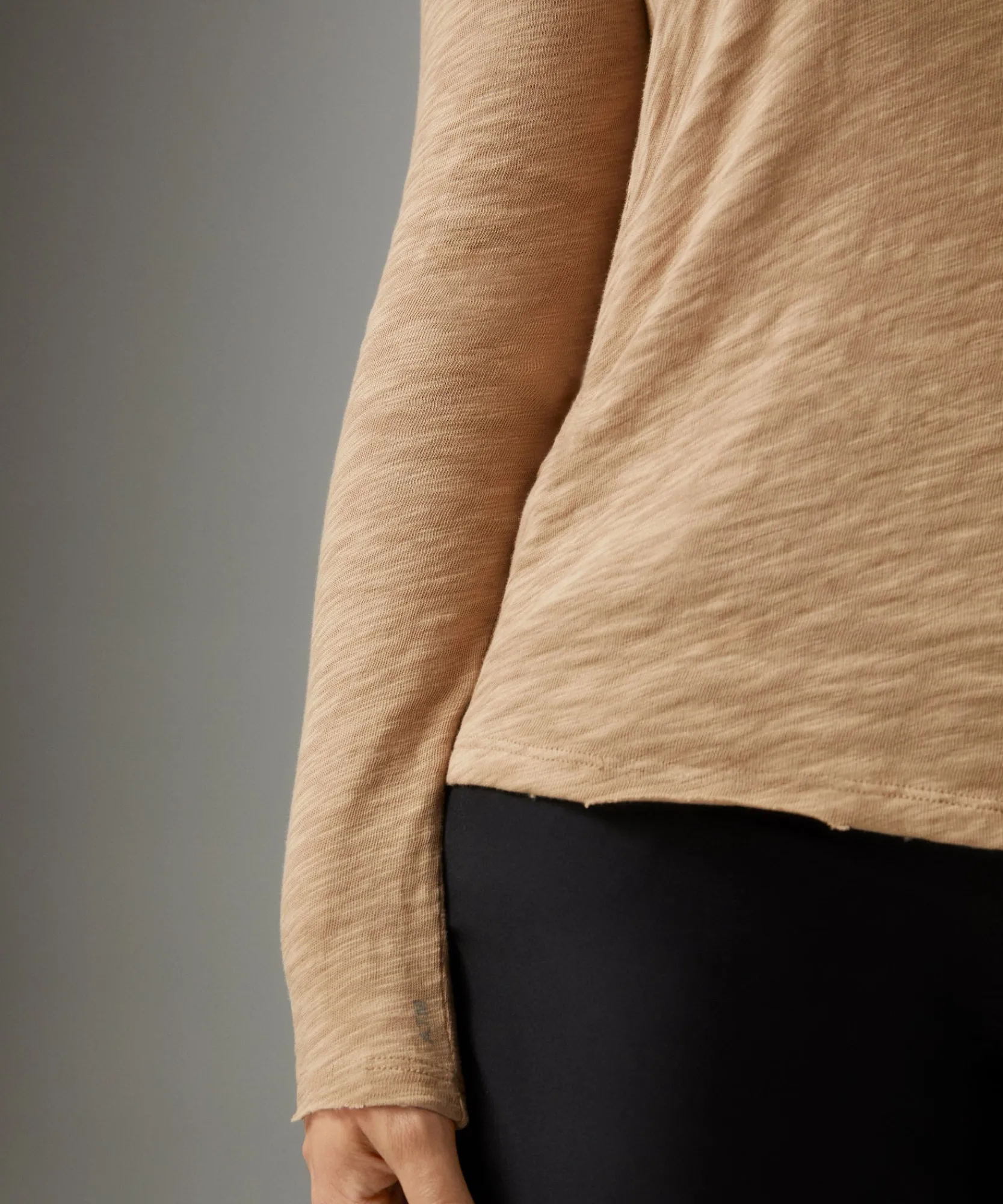The Slub Jersey Long Sleeve Destroyed Wash Tee gets its texture from the uneven yarns of our unique Peruvian Cotton. It features a subtle scoop neck, imperfectly distressed hem and sleeve cuffs, and just the right amount of sheer. The loose weave of this heavier Cotton molds modestly to the body offering the perfect drape.