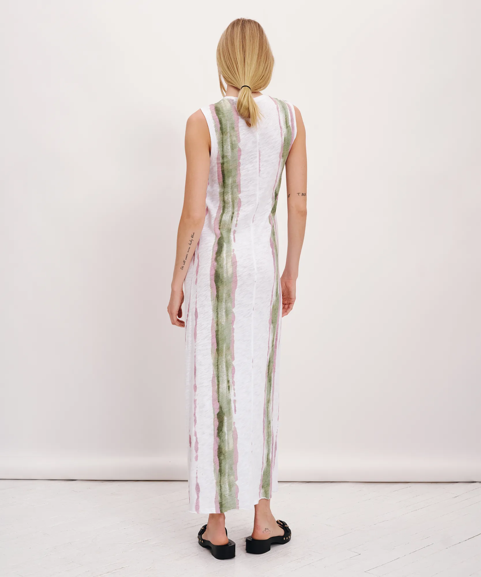 The Slub Jersey with Paint Stroke Sleeveless Maxi Dress gets its texture from the uneven yarns of our unique Peruvian Cotton. It features a paintroke print and a full length with ribbing on the trims.